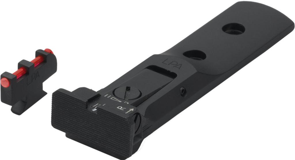 Set di mira regolabile TXT con foglia target e mirino in fibra ottica rossa bloccato tramite una molla (MP58F) per S&W 629, 686, 586, 627, 66, 67, 696, 17, 19, 657, 610, 625, 29, 27, nuovi cal. 50.